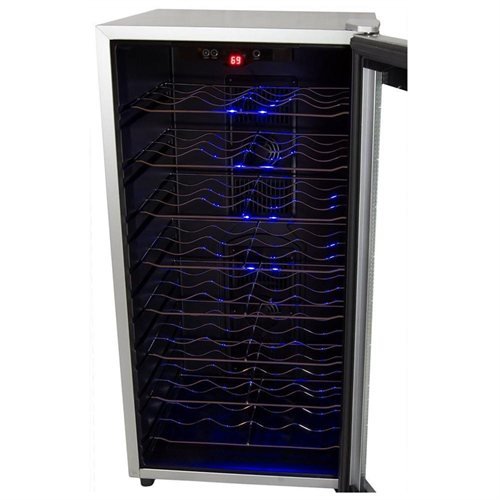 This wine cooler comes with 8 full-width, chrome-plated chrome shelves and provides plenty of space to store up to 32 standard bottles of wine.